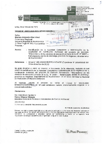 Identificación de la Autoridad Competente y determinación de la exigibilidad de Certificación Ambiental del proyecto de inversión “Mejoramiento de los servicios de educación primaria de la I.E. N° 36687 – Ñahuinpuquio, distrito de Anchonga, provincia de A