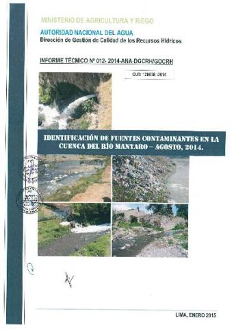 IDENTIFICACIÓN DE FUENTES CONTAMINANTES EN LA CUENCA DEL RÍO MANTARO – AGOSTO,2014