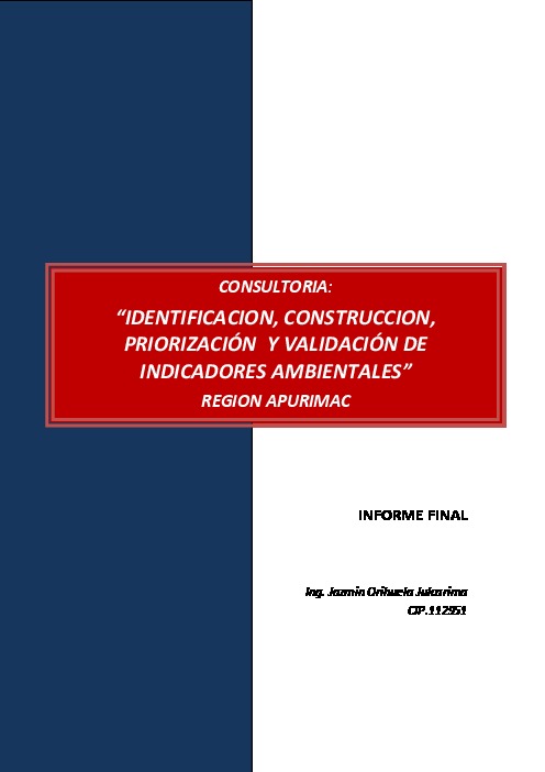 IDENTIFICACIÓN, PRIORIZACIÓN Y VALIDACIÓN DE INDICADORES AMBIENTALES DE LA REGIÓN APURÍMAC