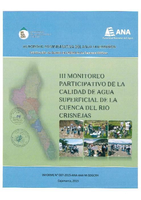III Monitoreo participativo de la calidad de agua superficial de la cuenca del río Crisnejas