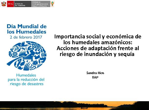La siguiente presentacion nos da a conocer la importancia social y económica de los humedales amazónicos, ademas de las acciones que se deberian tomar para la adaptación frente al riesgo de inundación y sequía.