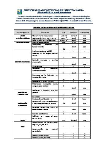 El presente documento fue elaborado por elaborado por la Municipalidad Provincial de Loreto-Nauta, el mismo que contiene información de los indicadores ambientales, con la finalidad de que las instituciones públicas y privadas asi como el público en general tenga la información en cuanto a como va el manejo de los residuos sólidos y de esa manera poder ir diseñando políticas ambientales que permitan el menor impacto ambiental para la provincia.