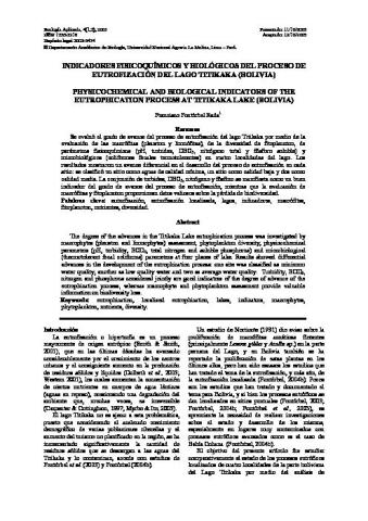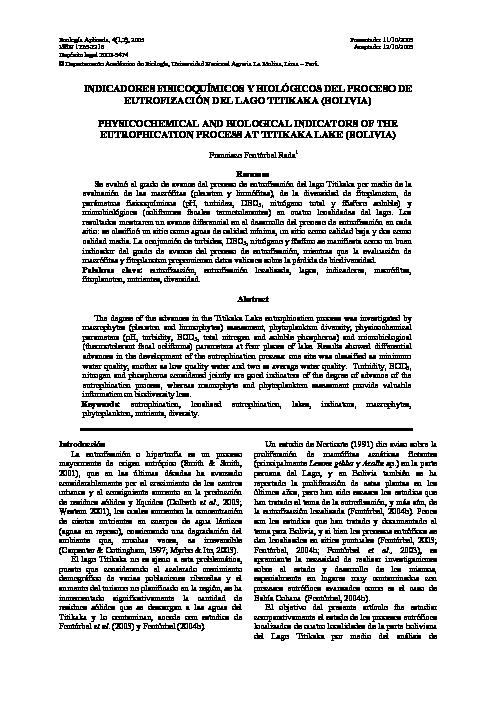 INDICADORES FISICOQUÍMICOS Y BIOLÓGICOS DEL PROCESO DE EUTROFIZACIÓN DEL LAGO TITIKAKA (BOLIVIA)