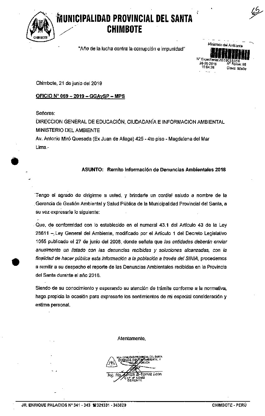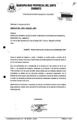 Información de Denuncias Ambientales 2018 Municipalidad Provincial del Santa