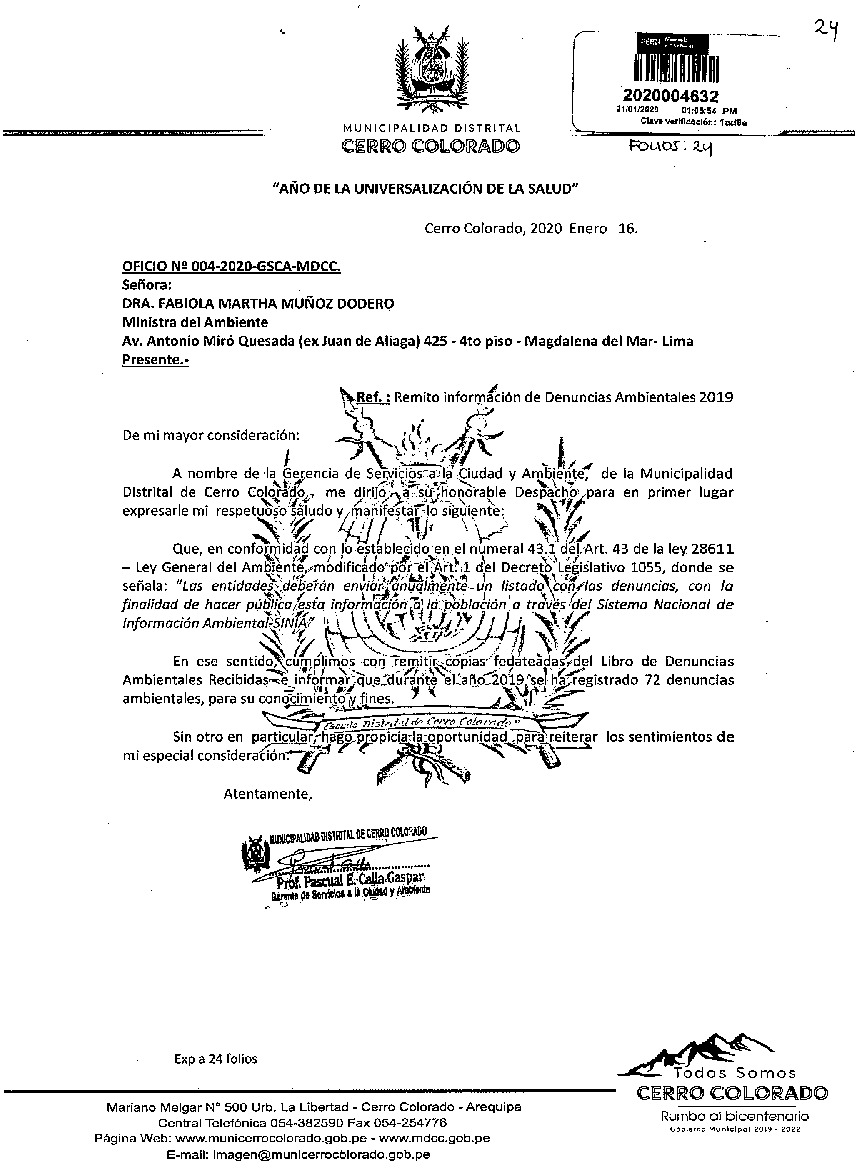 Información de Denuncias Ambientales 2019 Municipalidad Distrital de Cerro Colorado