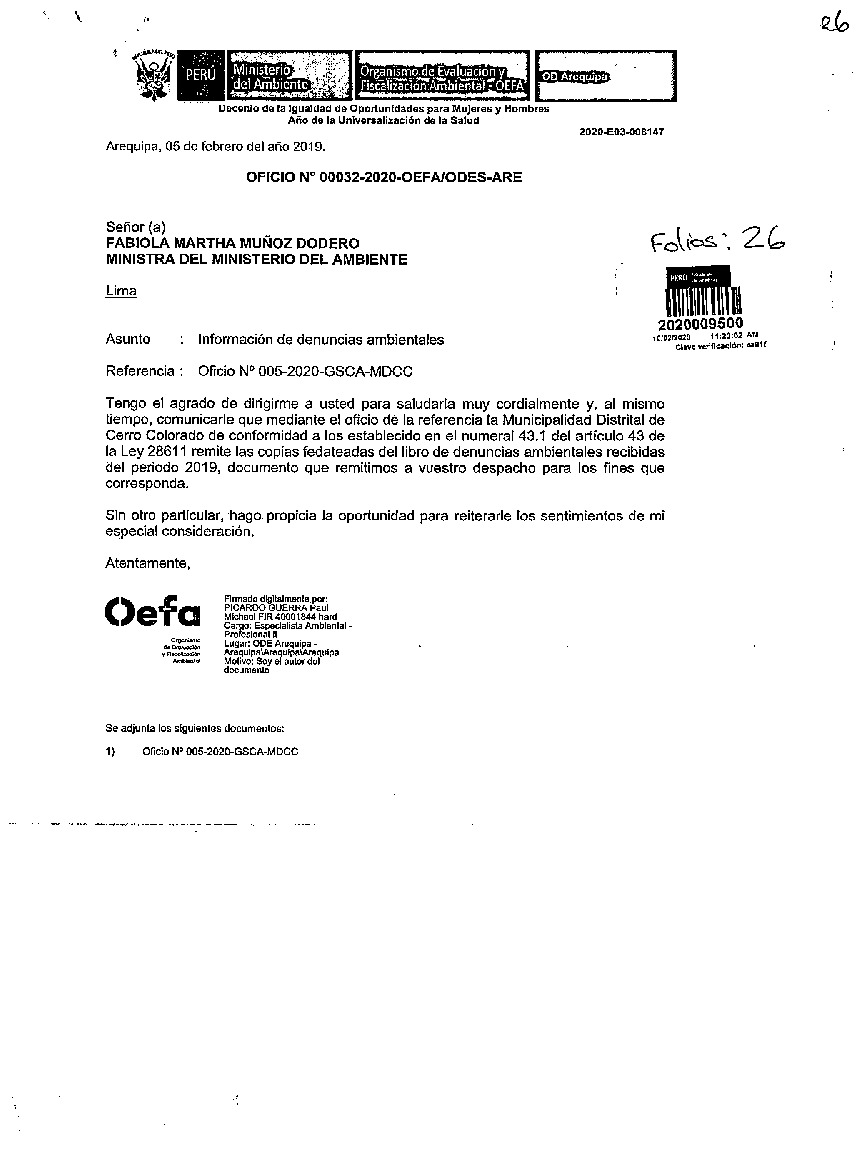 Información de Denuncias Ambientales 2019 Municipalidad Distrital de Cerro Colorado