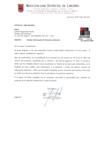 Información de denuncias ambientales 2020 de la Municipalidad Distrital de Lancones