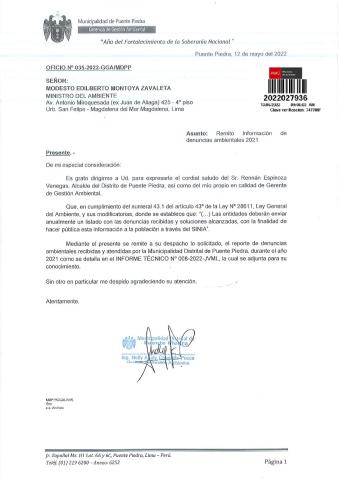 información de denuncias ambientales 2021 de la Municipalidad de Puente Piedra