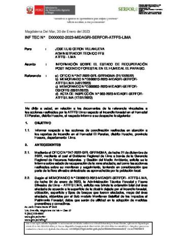 El área total determinada de acuerdo al reporte de cicatriz individual de incendio forestal a partir de imágenes satelitales por la DGIOFFS es de 115.75 hectáreas del sector El Humedal El Paraíso, distrito Huacho, provincia Huaura y departamento Lima.