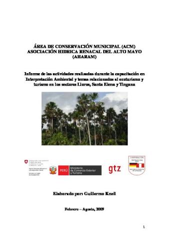 Informe de actividades realizadas durante la Capacitación en Interpretación Ambiental y temas relacionados al Ecoturismo y Turismo en los Sectores Llloros, Santa Elena y Tingana