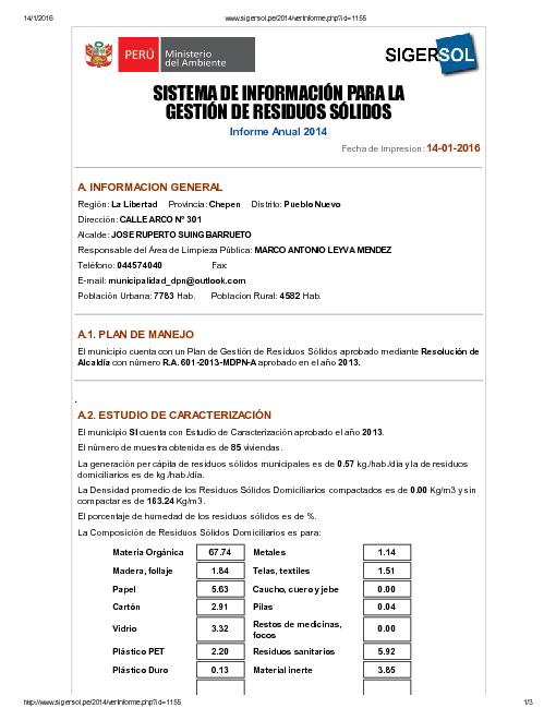 Informe Anual del SIGERSOL - Informe Anual 2014 - Provincia de chepen