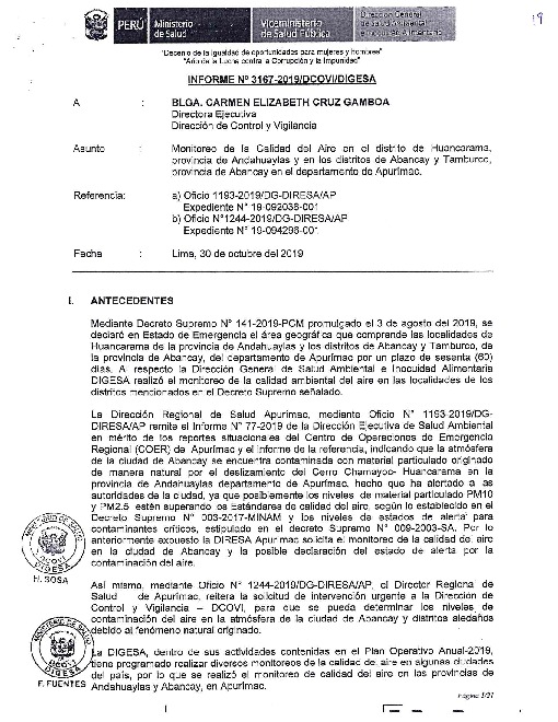 Informe de la Calidad de Aire en las Provincias de Abancay y Andahuaylas en el Departamento de Apurimac