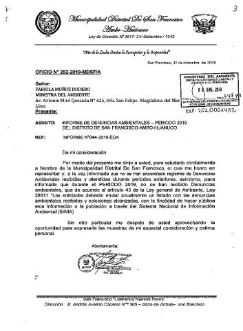 Informe de denuncias ambientales - periodo 2019 del distrito de San Francisco-Ambo-Huánuco