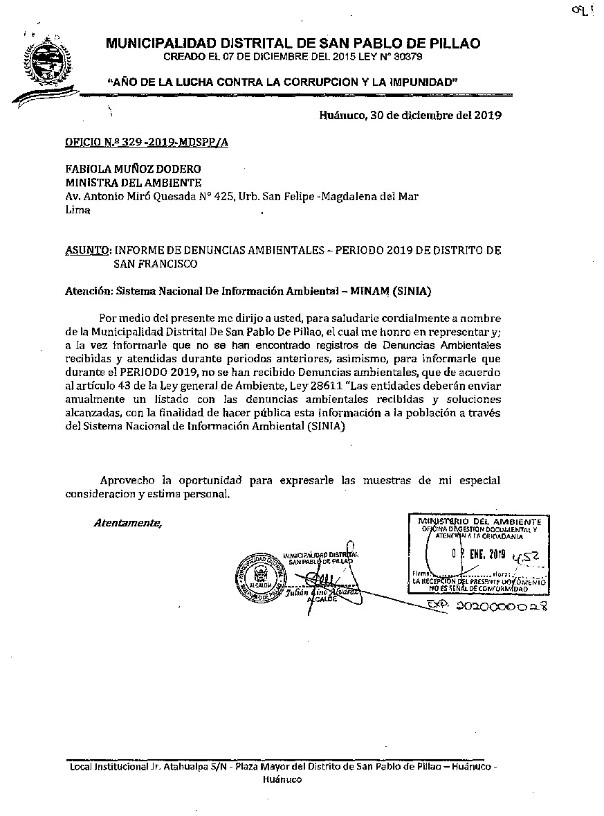 INFORME DE DENUNCIAS AMBIENTALES - PERIODO 2019 DE DISTRITO DE SAN FRANCISCO