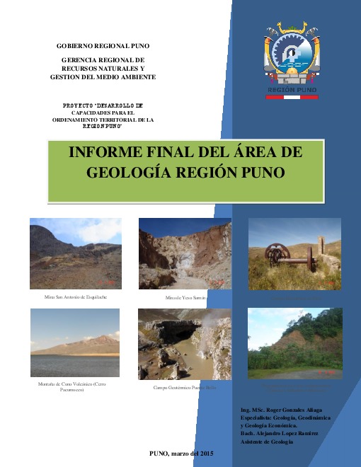 INFORME FINAL DEL ÁREA DE GEOLOGÍA REGIÓN PUNO