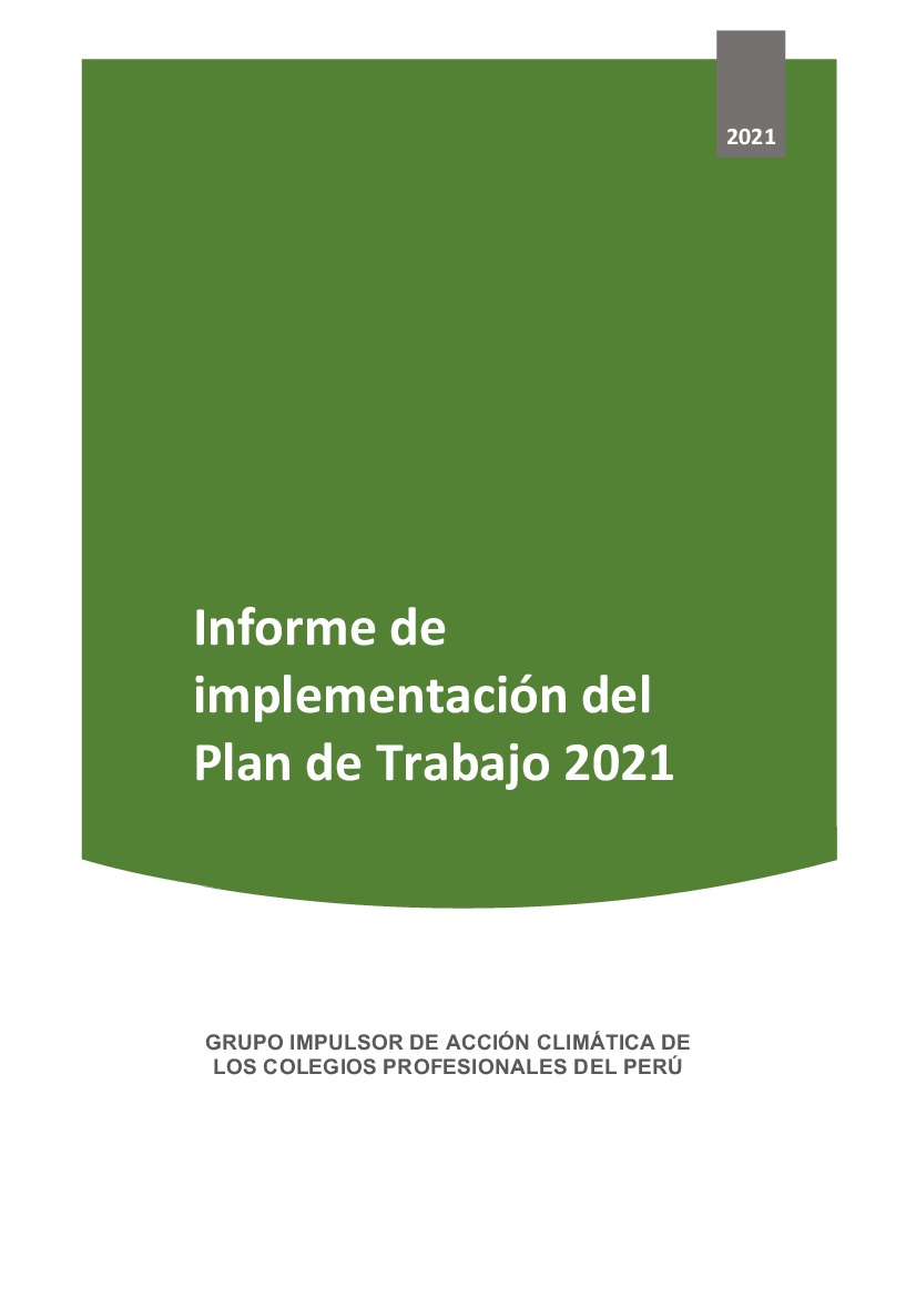 Informe de implementación del Plan de Trabajo 2021 del Grupo impulsor de acción climática de los Colegios Profesionales del Perú