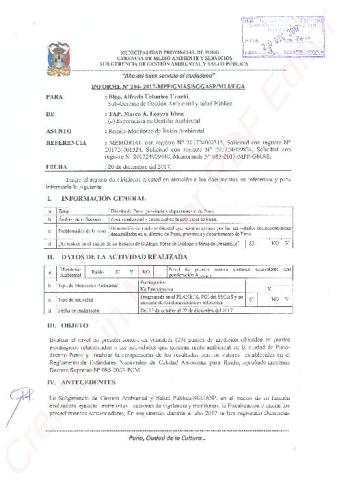 Informe de Monitoreo de Ruido Ambiental en el distrito de Puno-2017