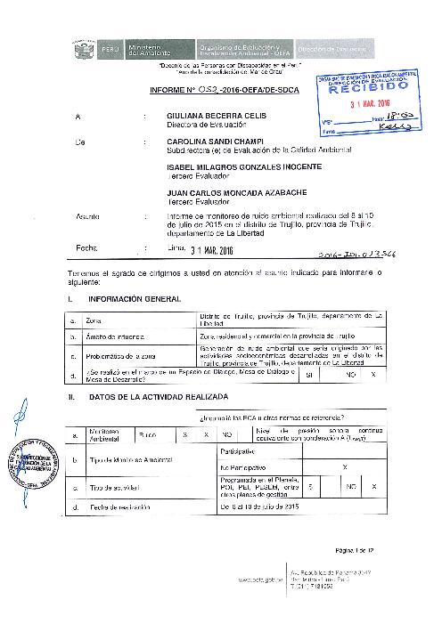 Informe de monitoreo ruido ambiental realizado del 8 al 10 de Julio de 2015 en el distrito de Trujillo por el Organismo de Evaluación y Fiscalización Ambiental - OEFA