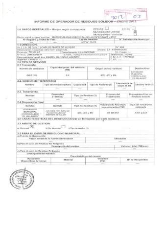 Informe de Operador de Residuos Sólidos del I Semestre del 2012 de la Municipalidad Distrital de La Esperanza
