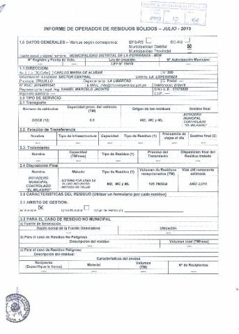 Informe de Operador de Residuos Sólidos del III Trimestre 2015 de la Municipalidad Distrital de La Esperanza