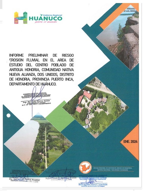 Informe Preliminar de Riesgo erosión fluvial en el are de estudio del centro Poblado de Antigua Honoria, Comunidad Nativa Nueva Alianza
