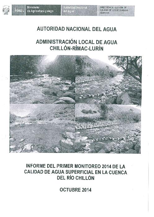 Informe del Primer Monitoreo 2014 de la Calidad de Agua Superficial en la Cuenca del Rio Chillon