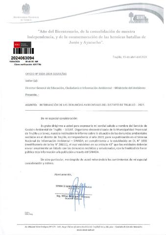 Informe sobre reporte de denuncias ambiental es anuales 2023 Municipalidad Provinical de Trujillo