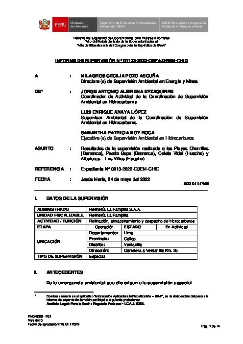 INFORME DE SUPERVISION N° 0122-2022 OEFA PLAYAS DE CHANCAY A BARRANCA