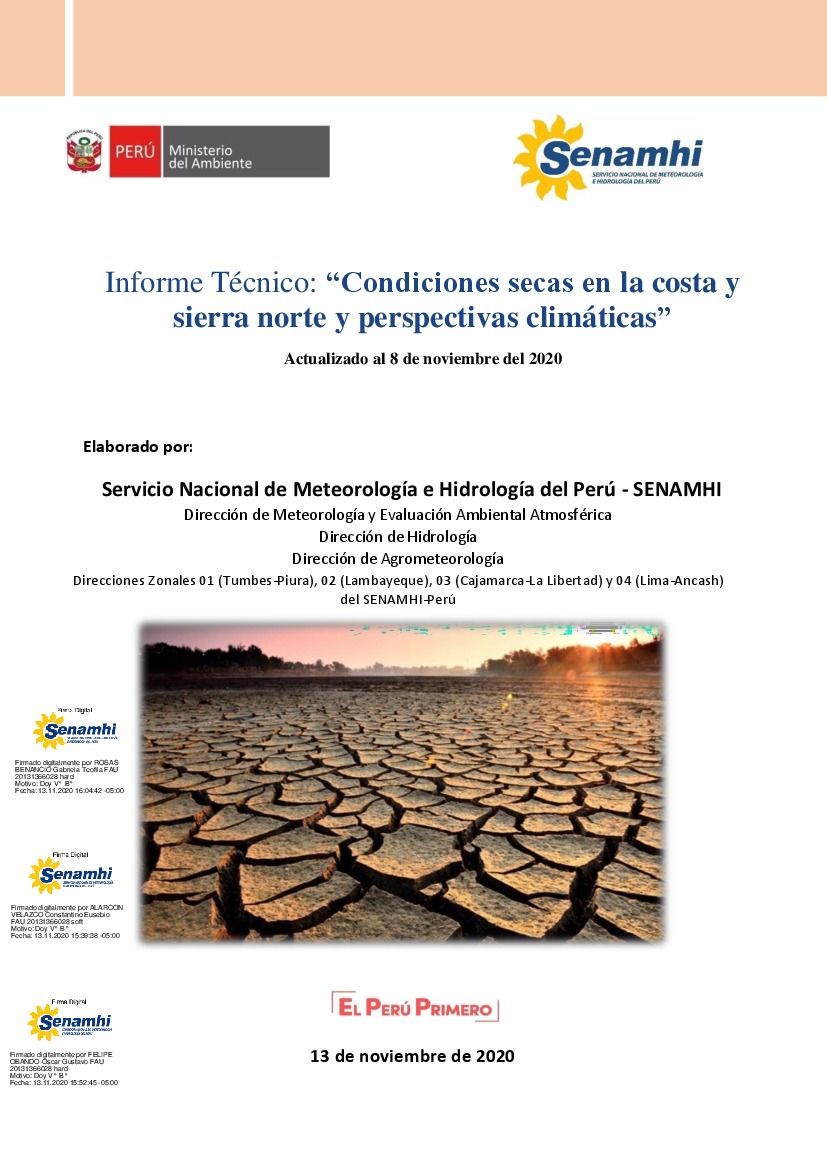 Informe Técnico: “Condiciones secas en la costa y sierra norte y perspectivas climáticas”