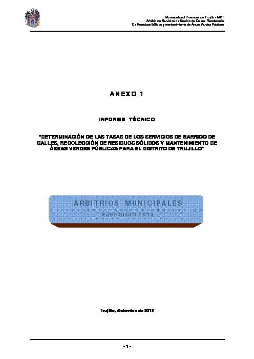 Informe Técnico: “Determinación de las tasas de los servicios de barrido de calles, recolección de residuos sólidos y mantenimiento de áreas verdes públicas para el distrito de Trujillo”