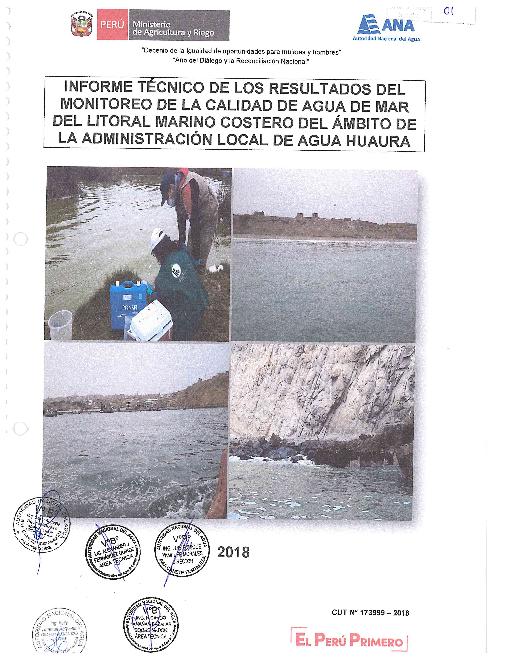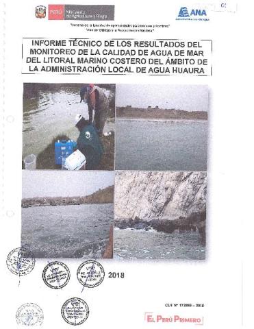 Informe Técnico de Monitoreo de la Calidad de Agua de Mar del Litoral Marino Costero del Ámbito de la Administración Local del Agua Huaura - 2018