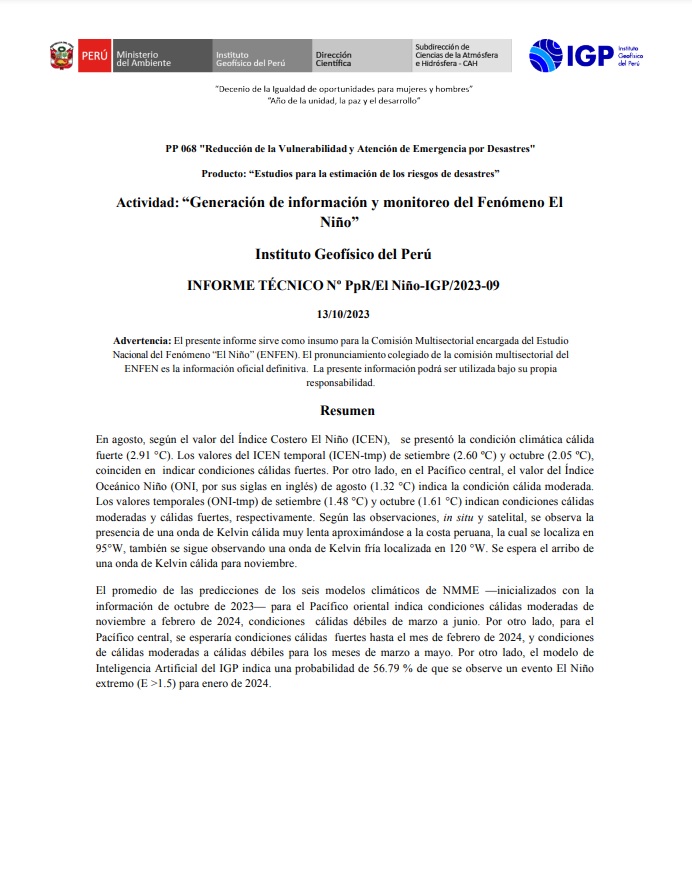 INFORME TÉCNICO Nº PPR/El Niño-IGP/2023-09
