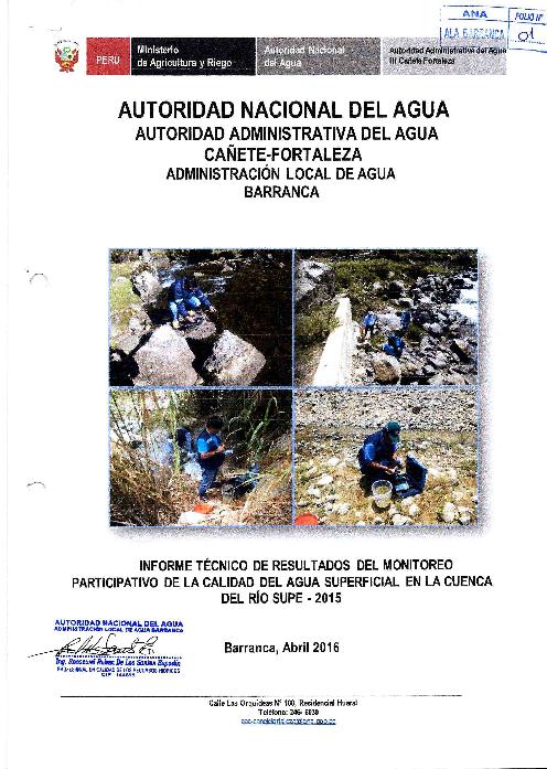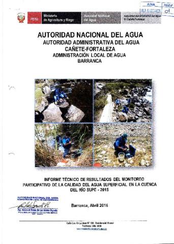 Informe Técnico de Resultados del Monitoreo Participativo de la Calidad del Agua Superficial en la Cuenca del Río Supe - 2015