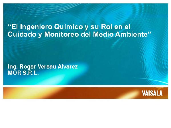 Esta presentación del Ing. Roger Vereau Alvarez se realizó en la Semana del Capítulo de Ingeniería Química y Ambiental – Trujillo del Colegio de Ingenieros de La Libertad en Enero del 2016.