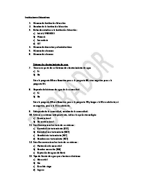 Es una ficha de recoleccion de informacion sobre el sistema de abastecimiento de agua, sistema de saneamiento, la misma que se aplica a las Instituciones Educativas.