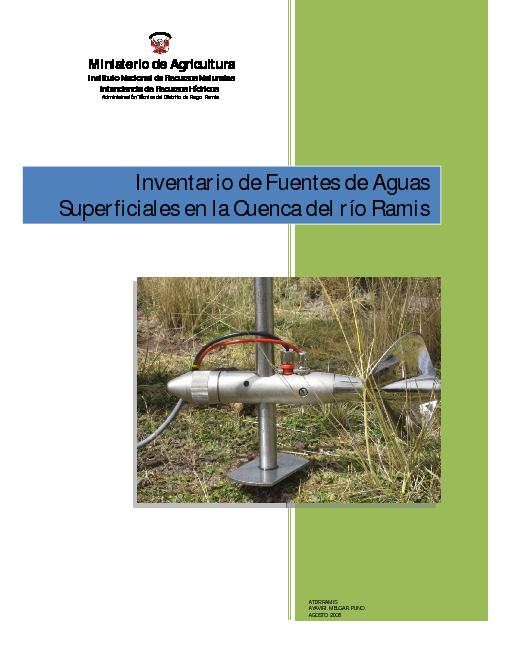 El presente informe contiene el Inventario de Fuentes de Agua Superficial realizada en el marco del