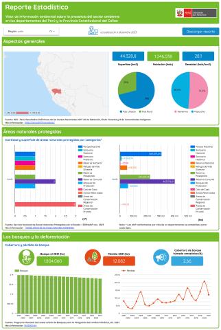 Los reportes estadísticos ambientales departamentales (Dossiers) son documentos de síntesis que contienen datos generales, así como la información estadística más importante sobre la presencia del sector ambiente en los departamentos del Perú, con la finalidad de servir como una herramienta que brinda información de calidad, oportuna y clara sobre el estado del ambiente y los recursos naturales con la finalidad que puedan ser utilizados en los procesos de gestión ambiental y alertar sobre posibles problemas ambientales.