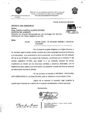 Listado de denuncias recibidas y soluciones alcanzadas. 2019. Municipalidad Provincial de Huanta