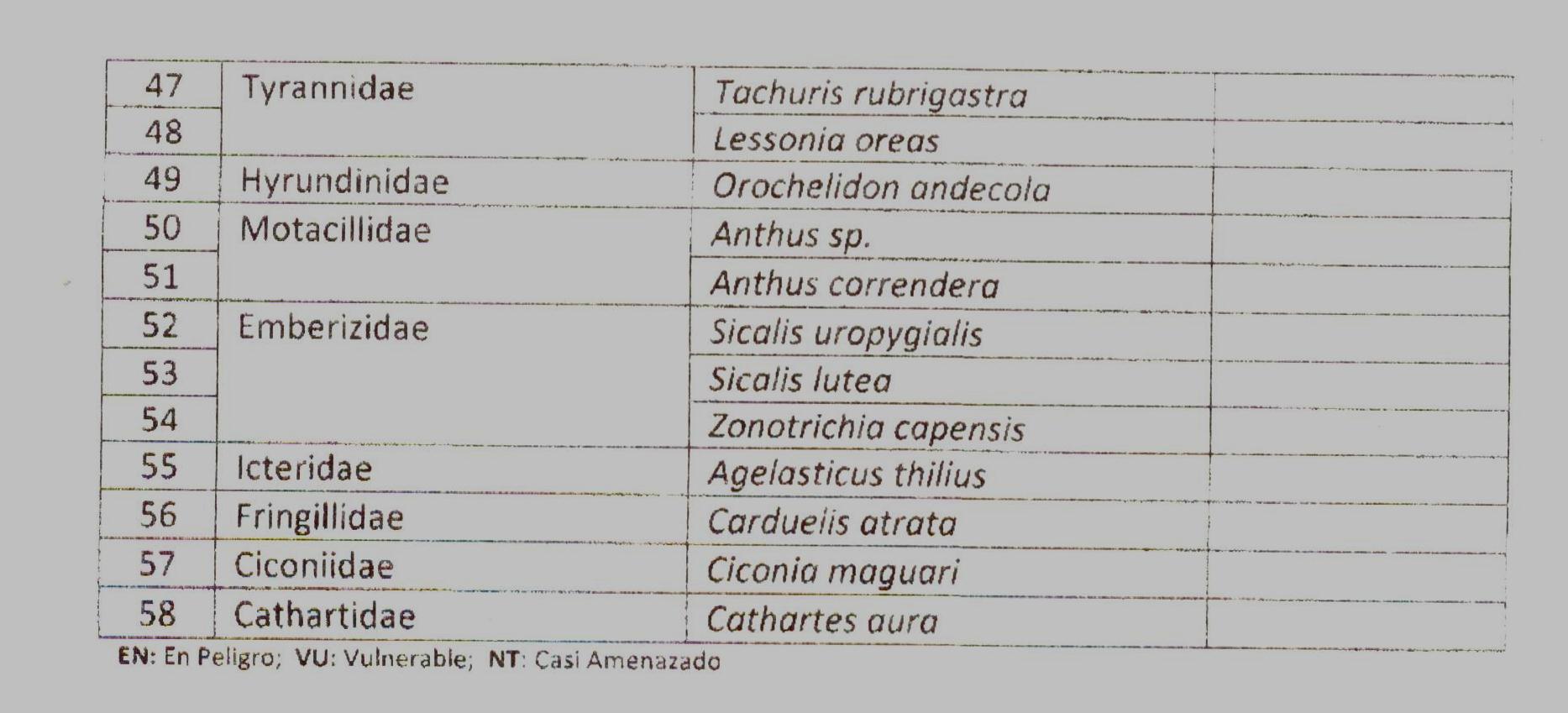 Listado de Especies de aves registradas en la Reserva Nacional del Titicaca