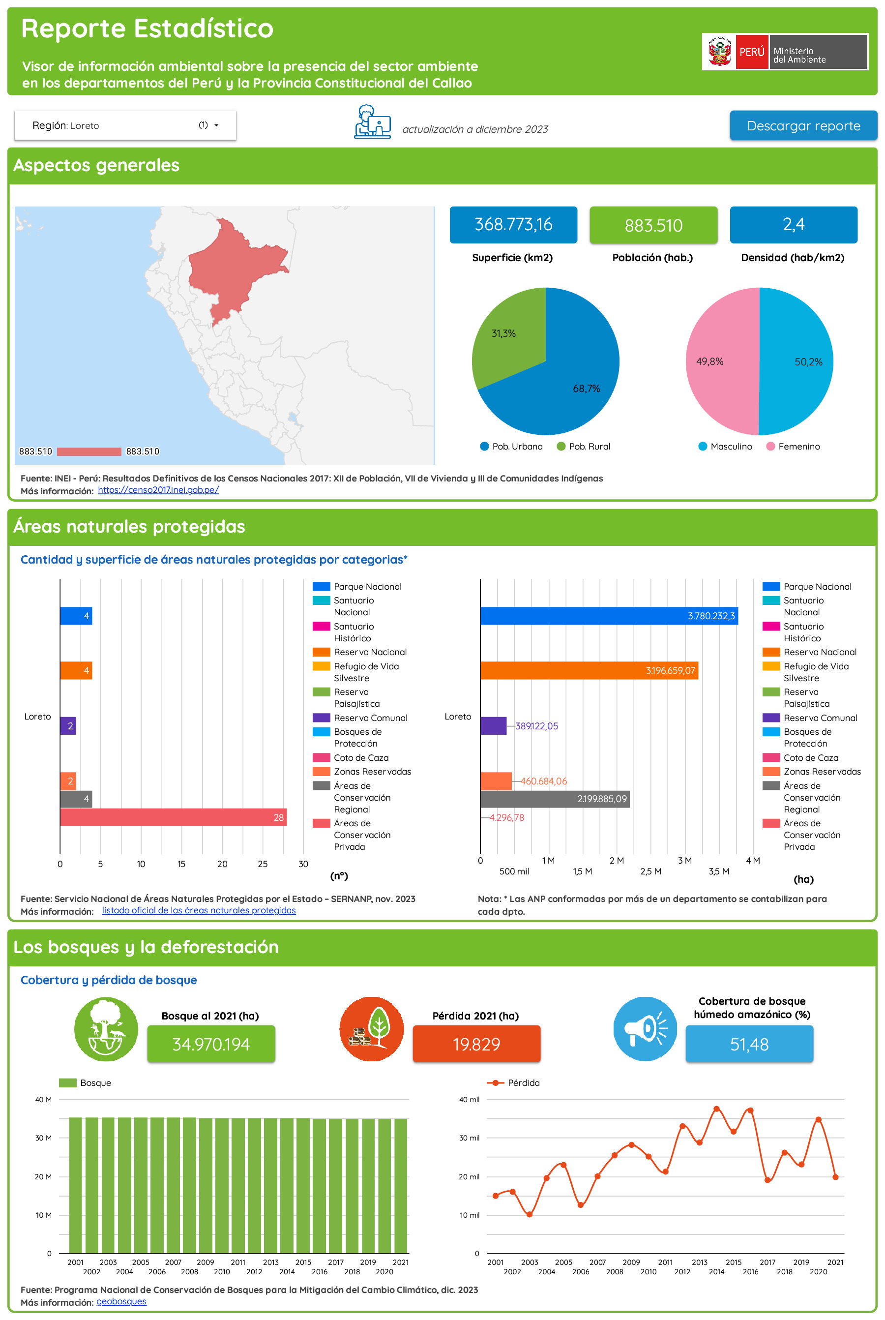 Loreto, Reporte Estadístico Departamental, diciembre 2023