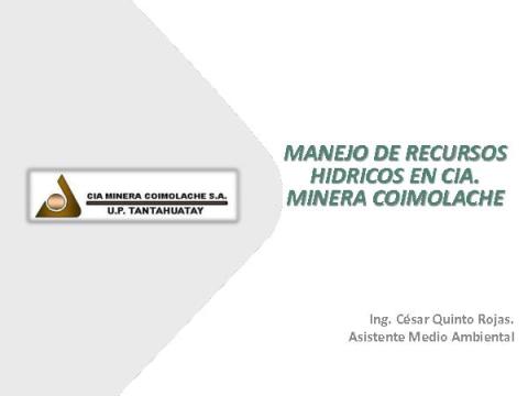 Manejo de recursos hídricos en CIA. Minera Coimolache