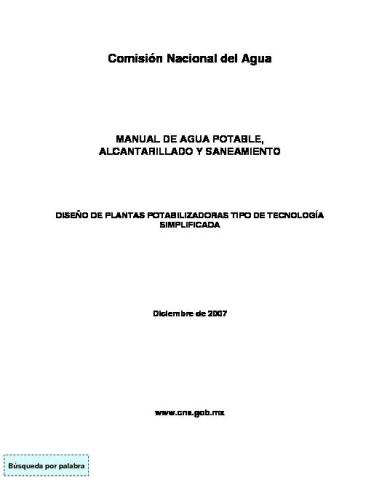 MANUAL DE AGUA POTABLE, ALCANTARILLADO Y SANEAMIENTO DISEÑO DE PLANTAS POTABILIZADORAS TIPO DE TECNOLOGÍA SIMPLIFICADA