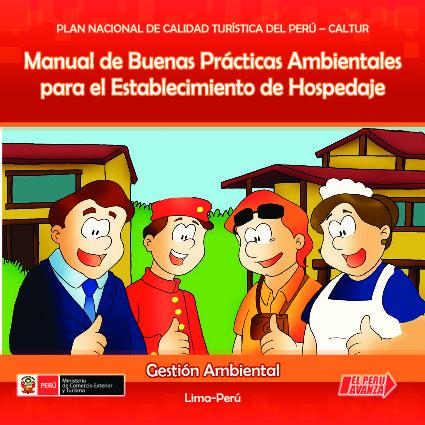 El presente Manual de Buenas Prácticas Ambientales para el Establecimiento de Hospedaje es una publicación elaborada por el Viceministerio de Turismo y dirigido principalmente a las Micro y Pequeñas Empresas (MYPES) con el fin de presentar de manera didáctica, medidas tendientes a mejorar sus gestión ambiental; impulsando a que desarrollen sus actividades con creciente responsabilidad y a que promuevan que los turistas sean tambien protagonistas en el compromiso de respetar el ambiente.