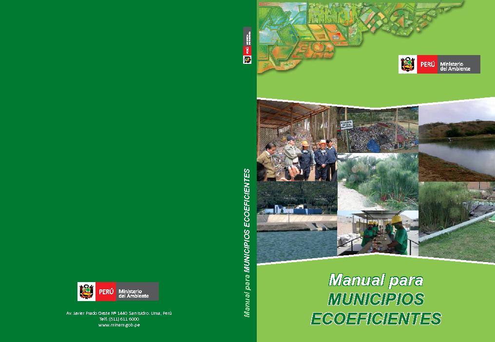 El Manual para Municipios Ecoeficientes está dirigido a los funcionarios de los gobiernos regionales y municipales, responsables de la gestión ambiental; y tiene por objeto orientar en la identificación de la mejor alternativa ecoeficiente para el tratamiento y reuso de las aguas residuales, el reciclaje y disposición segura de los residuos sólidos y el ordenamiento territorial para el desarrollo sostenible.