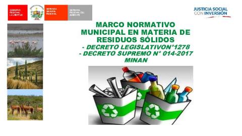 Marco normativo municipal en materia de residuos sólidos, Decreto Legislativo N°1278, Decreto Supremo N° 014-2017- MINAN
