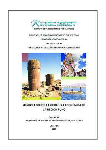 MEMORIA SOBRE LA GEOLOGÍA ECONÓMICA DE LA REGIÓN PUNO