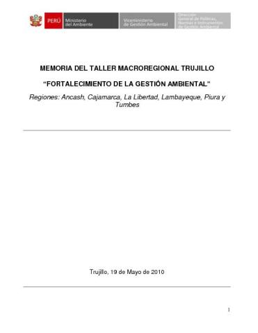 Memoria del Taller Macroregional “Fortalecimiento de la Gestión Ambiental”, Regiones: Ancash, Cajamarca, La Libertad, Lambayeque, Piura y Tumbes
