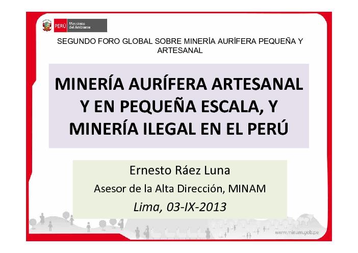 MINERÍA AURÍFERA ARTESANAL Y EN PEQUEÑA ESCALA, Y MINERÍA ILEGAL EN EL PERÚ