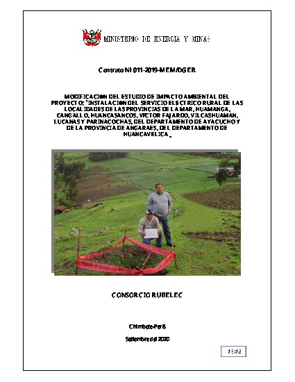 MODIFICACIÓN DEL ESTUDIO DE IMPACTO AMBIENTAL DEL PROYECTO: “INSTALACIÓN DEL SERVICIO ELÉCTRICO RURAL DE LAS LOCALIDADES DE LAS PROVINCIAS DE LA MAR, HUAMANGA, CANGALLO, HUANCASANCOS, VÍCTOR FAJARDO, VILCASHUAMAN, LUCANAS Y PARINACOCHAS, DEL DEPARTAMENTO DE AYACUCHO Y DE LA PROVINCIA DE ANGARAES, DEL DEPARTAMENTO DE HUANCAVELICA” PARTE 1