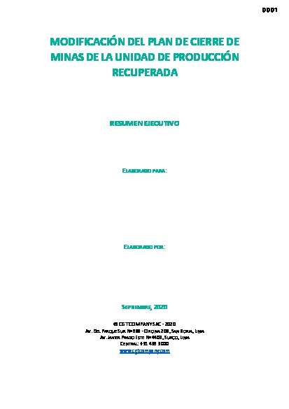 MODIFICACIÓN DEL PLAN DE CIERRE DE MINAS DE LA UNIDAD DE PRODUCCIÓN RECUPERADA – HUANCAVELICA